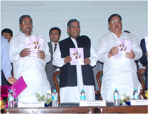 The Union Minister for Minority Affairs, Shri K. Rahman Khan and the Chief Minister of Karnataka, Shri Siddaramaiah at the inauguration of Southern Regional Conference of NGO's organised by Ministry of Minority Affairs, at Bangalore on December 21, 2013.